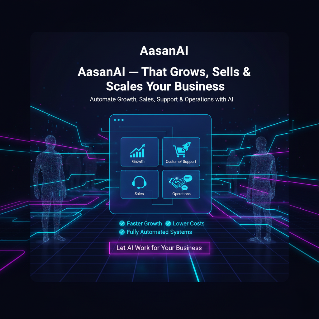 At Aasan AI, we empower modern businesses to grow faster, operate smarter, and scale effortlessly through advanced artificial intelligence, intelligent automation, and data-driven systems.
